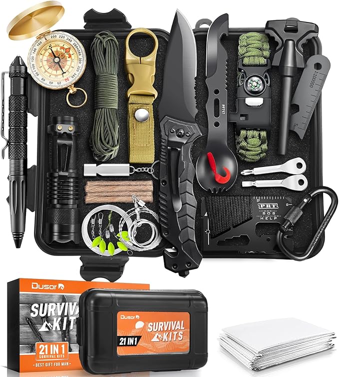 Dusor Gifts for Men, 21 in 1 Survival Kit, Dad Gifts Survival Gear and Supplies, Gifts for Dad Husband, Camping Essentials Must Have, Mens Gifts for Camping Fishing Huntin