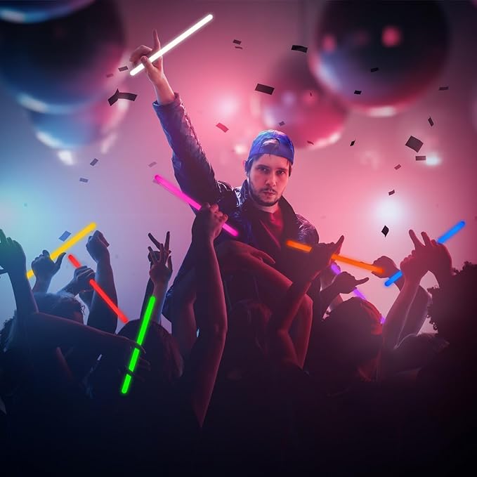 • 【Premium Quality and Sturdy Package】These huge light sticks are made of high- quality blend material,non-toxic,non flammable,not easy to leak and waterproof. They are packaged in a firm cardboard tube to ensure durability and protection from light and heat,sturdy package also will keep the integrity of quality glow sticks and prevents them from activating prematurely. Our glow sticks are safe to use, it’s a good choice for both indoor and outdoor activities