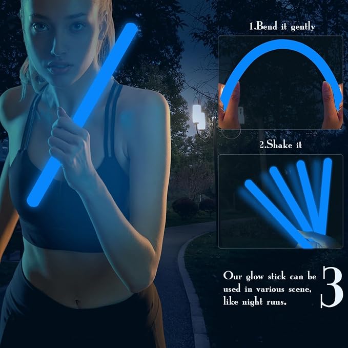 • 【Easy to Use】Gently bend the sticks and shake it firstly,and waiting for the liquid to mix evenly,then these glow sticks will be super bright.Pls be careful and do not bend the stick excessively to avoid liquid leakage.Our giant glow sticks are sturdy,lightweight,proper size allows you to put them in backpacks,handbags, or luggage, ideal for daily using and travelling