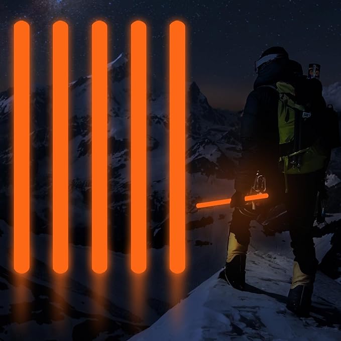 • 【Emergency Lighting Function】Our big glow sticks are military grade bright light sticks,mainly applied for emergency situation.They will provide efficient and reliable lights in power outage,natural disasters(like earthquake,hurricane),or other unexpected situations where electricity may not be available.These light up sticks also are good partners for camping bags, suitable for diving,exploration,camping, night riding, fishing, hiking, field and so on