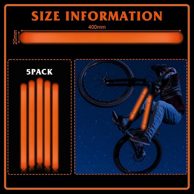 • 【Jumbo Size and Sufficient Quantities】Package come with 5pcs of large glow sticks,each length is about 16 inches, diameter is about 20mm.Sufficient quantities and ultra-bright light can meet your daily requirements,and also enough for you to share or replace with your families,friends and partner