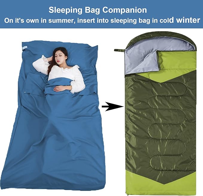 - EASY CLEAN:Sleep bag liner can be washed by hand & machine, dries quick on tumble drying. Polyester fabric offers comfortablity and durability with exceptional softness, more durable than cotton.