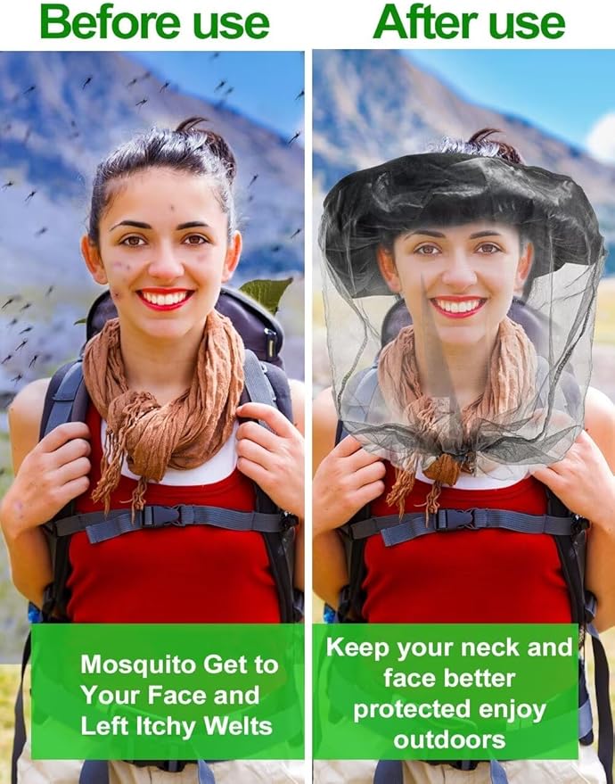 - Natural way shied: The mosquito head net offers natural protection, shielding your face and neck from flies, gnats, mosquitoes, and other insects. It is not treated with chemicals, allowing for proper air circulation. This makes it the ideal choice for outdoor travel.