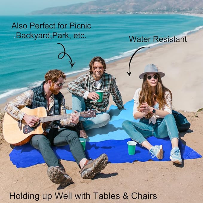 - Enjoy the outdoors with your loved ones. Our large blankets are designed for family travel and can accommodate up to 6 people. It measures 78"x82" and offers plenty of space for you and your friends to relax and soak up the sun. In addition, it is lightweight and comes with a backpack for easy transportation.