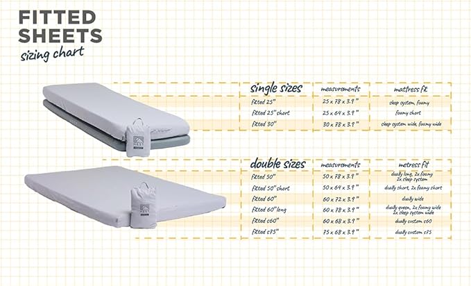 - HEST MATTRESS COMPATIBLE: Just like your home sheet, the HEST Fitted sheet is made out of premium quality fabric. It’s memory foam compatible and portable for sleeping on the go just like your HEST mattress. Fits Dually Long 50" or Sleep System 25" x 2, Foamy 25" x 2.