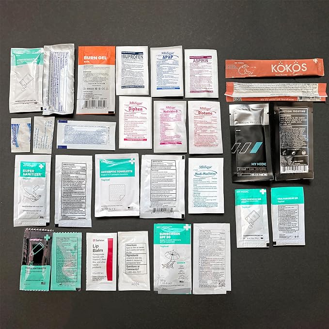 - COMPACT SURVIVAL KIT -This small first aid kit, equipped with over 45+ life-saving supplies, is a camping essential for both minor and severe injuries. Ensure you have the necessary camping supplies with our first aid kit for camping.