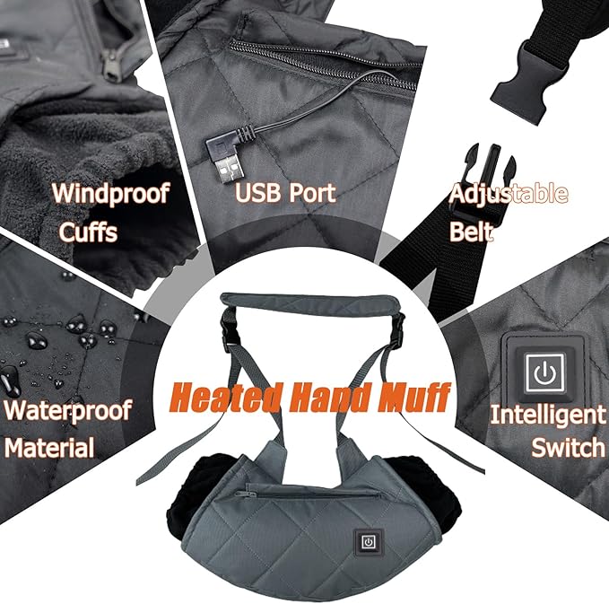 - 【Heated Hand Warmer Pouch】In many winter outdoor activities, how to keep your cold hands warm in cold weather? This heated hand muff solves your problems. It contains heating pads, which can heat up quickly after plugging in the power bank 【NO POWER BANK】. The portable hand muff is the perfect accessory to keep your hands warm while staying active in cold winter weather.