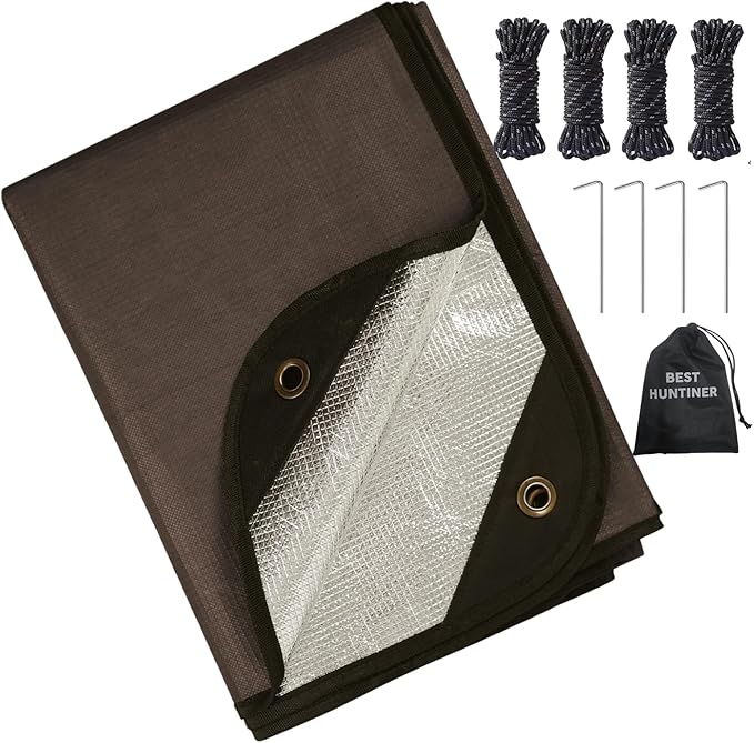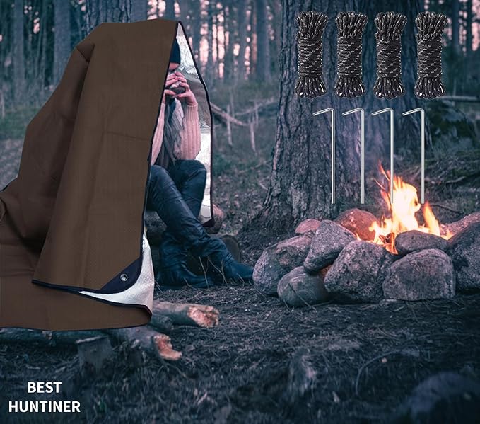 - 【Outdoor Equipment】Aluminized Mylar can reflect the light to make you to found easily and retain up to 93% of body heat to keep warm from cold to save your life.Focus sun light to heat your food or light a fire in the wild.So you stay warm,dry and alive in an emergency. The close-to-natural color and insulation can be used to deceive animals, and good shielding can reduce radiation and signal interference.