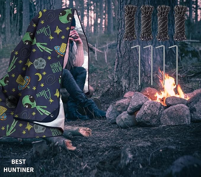 - Included Components : 1 survival tarp 4 tent stakes 4 tent cords