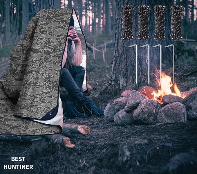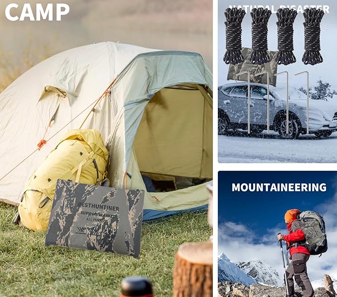 - Included Components : 1 survival tarp 4 tent stakes 4 tent cords