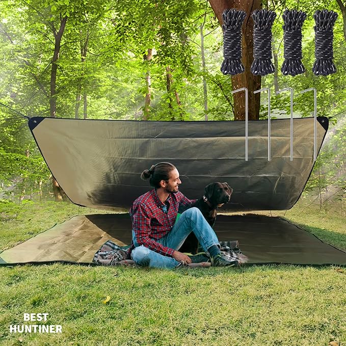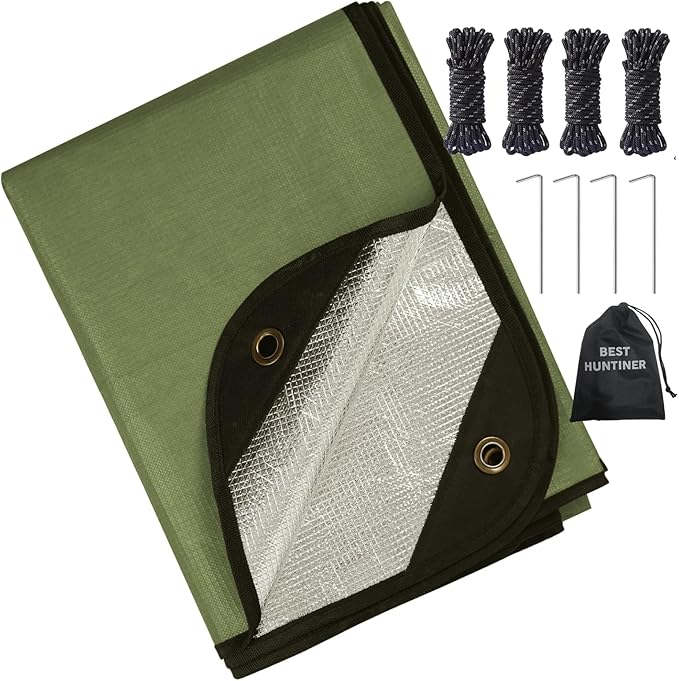- 【Outdoor Equipment】Aluminized Mylar can reflect the light to make you to found easily and retain up to 93% of body heat to keep warm from cold to save your life.Focus sun light to heat your food or light a fire in the wild.So you stay warm,dry and alive in an emergency. The close-to-natural color and insulation can be used to deceive animals, and good shielding can reduce radiation and signal interference.