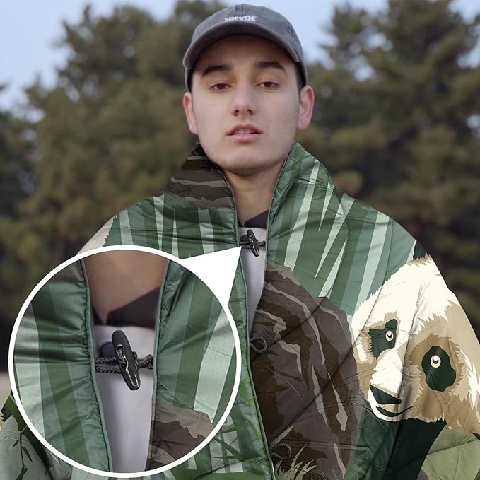 - Multipurpose Puffer Blanket and Poncho - This is a multi-purpose puffy blanket ultralight. In addition to being used as a warm camping blanket for sleeping for cold weather, the buttons on both sides combine to be used as a poncho, which is very convenient and can free your hands