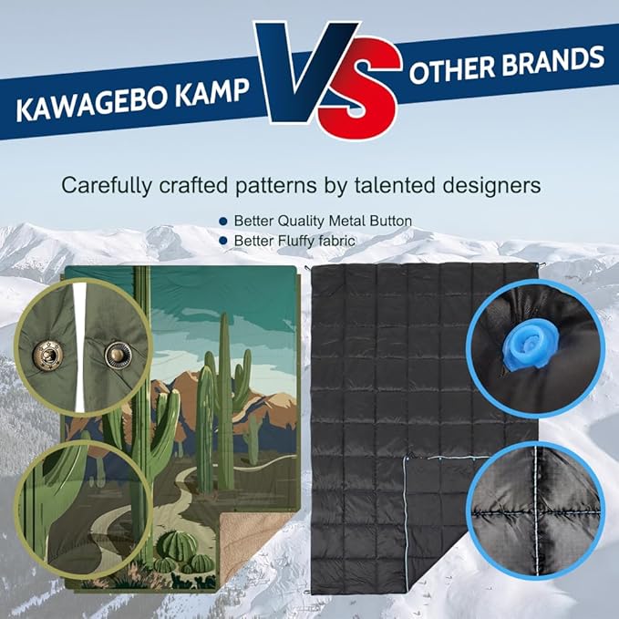 - 【Ultra Soft Sherpa Fleece】 - Made with thick sherpa fleece and quality materials ripstop polyester. The KawaGebo Kamp camping sherpa blanket is designed to keep you totally warm in just about any indoor or outdoor environment. Soft, warm and cozy enough, these outdoor camping blankets will provides comfort for a better sleep in rain, snow and cold weather.