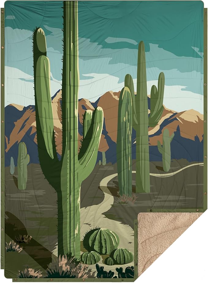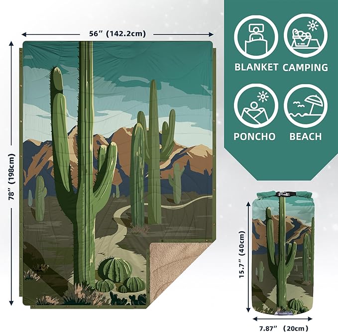 Outdoor Camping Blanket with Sherpa Lining, Extra Warm Thick Camp Blankets & Puffy Ultralight Soft Poncho DWR Camping Quilt for Cold Weather, Adventure,Sleeping,Backpacking 78"x 56"