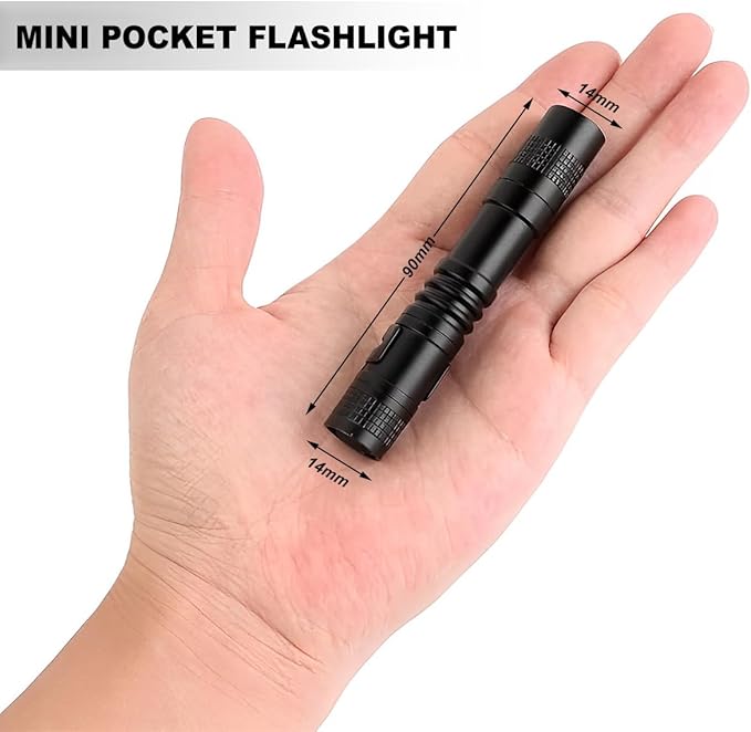 - [POCKET SIZE] Height 3.5 inches, the pocket flashlight with clip is designed in a small body shape to fit in your pants pocket, belt or backpack. This mini flashlight is powered by 1 AAA battery (battery not included).
