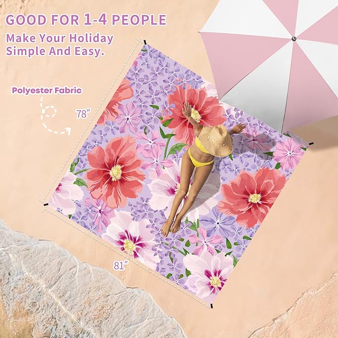 - 🛒Beach Picnic Mat:Package includes 1 beach blanket,4 ground stakes,1 carabiner.Still stable on windy days with 4 fixed anchors.Let’s enjoy the beach and sunshine with your family, kids and friends together.Please feel free to contact us for service if you have any questions. Including return service.