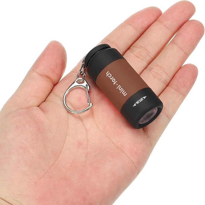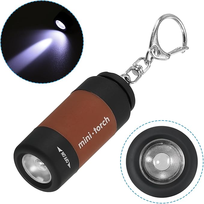PATIKIL 2.1" Mini Rechargeable LED Keychain Flashlight, EDC Portable Small Torch with USB Charging for Everyday Carry, Brown
