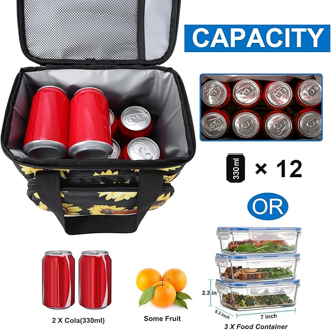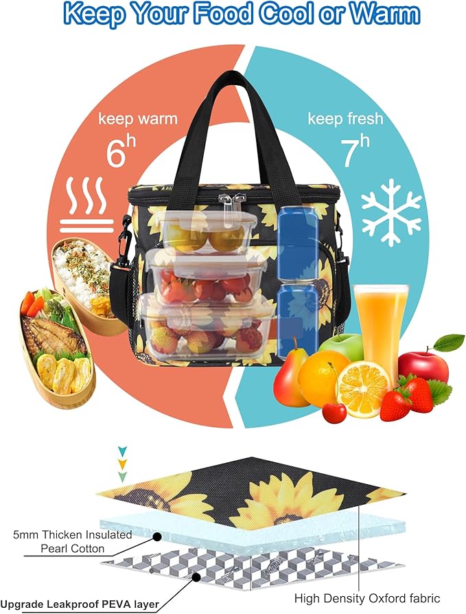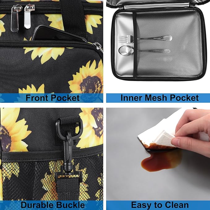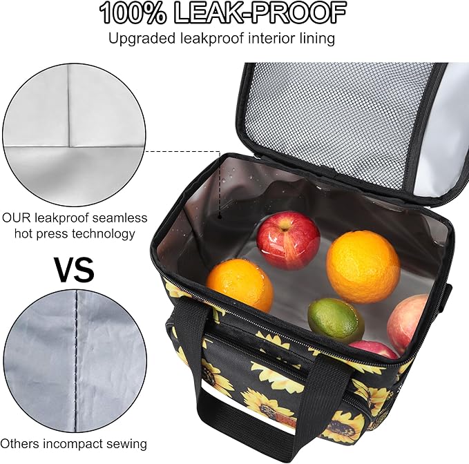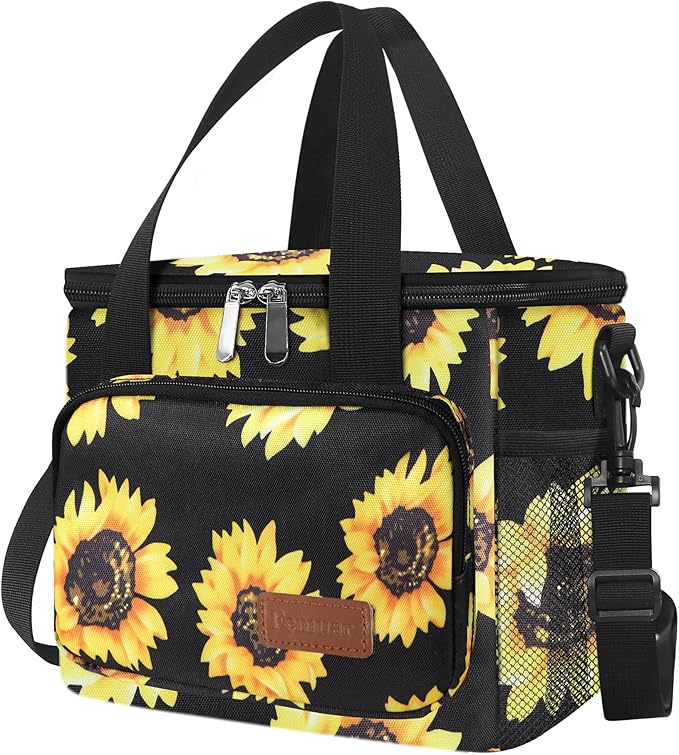 Femuar Lunch Bags for Women/Men, Insulated Lunch Bag for Work Office - Lunch Cooler Bag Leakproof Lunch Box with Adjustable Shoulder Strap - Sunflower