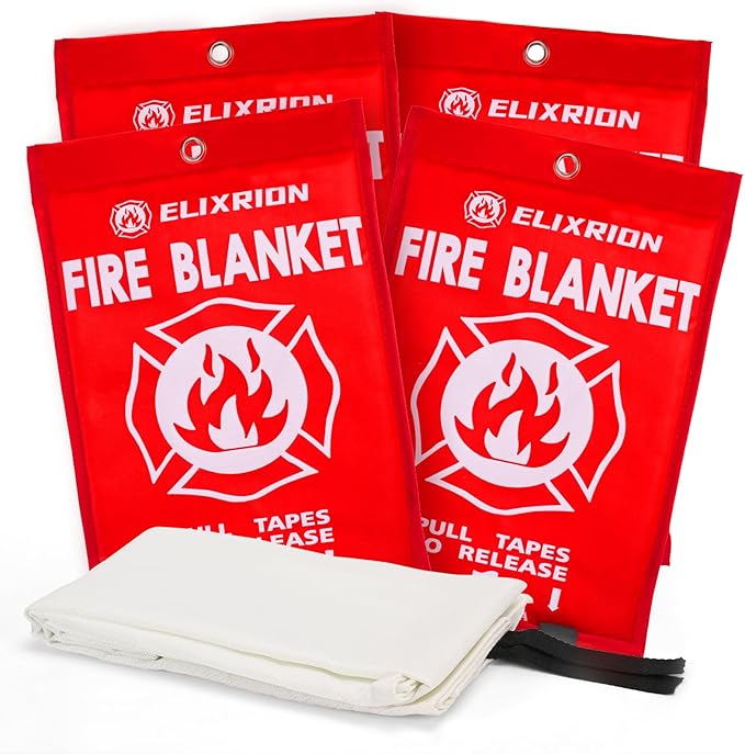 Emergency Fire Blanket 4 Pcs, 40" x 40" Fiberglass Suppression Blanket Portable Fire Extinguisher Blanket for Kitchen, Retardant Protection Emergency Safety Blanket for Home Car and Camping