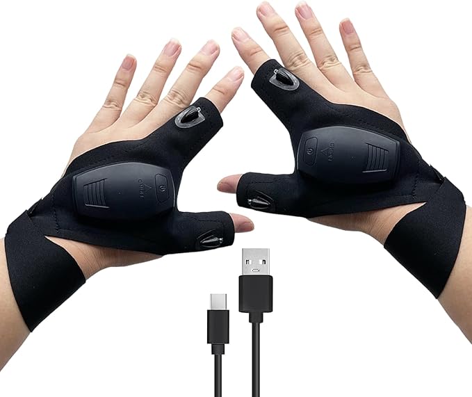 LED Flashlight Gloves with USB Cable,Gifts for Men Husband Dad Him Fathers Day Cool Gadgets Gifts for Mens Birthday Fishing Camping Repairing Accessories