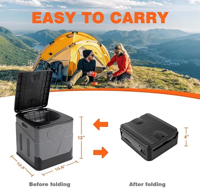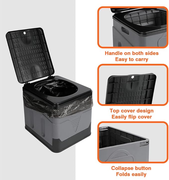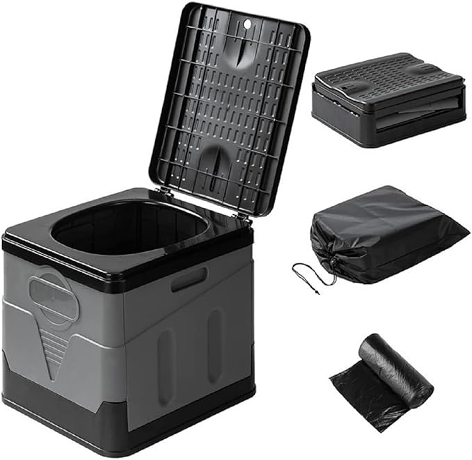 Portable Camping Toilets Porta Potty (Gray)-Collapsible Outdoor Emergency Toilet with Cover,Suitable for Camping,Hiking,Traffic Jams,Outdoor Excretion.