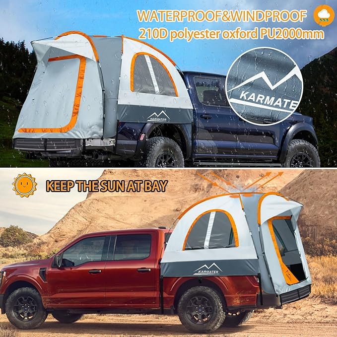 • 【Waterproof & Durable Material】Enjoy the great outdoors with this pickup truck tent that offers unbeatable water-resistance. Made of PU2000mm polyester oxford and coated with PU2000 waterproof coating, it delivers complete rainproof and waterproof performance without the need for a separate canopy. The bottom layer is waterproof to avoid any rainwater infiltration while the inner space remains clean and dry. A must-have for camping trips!