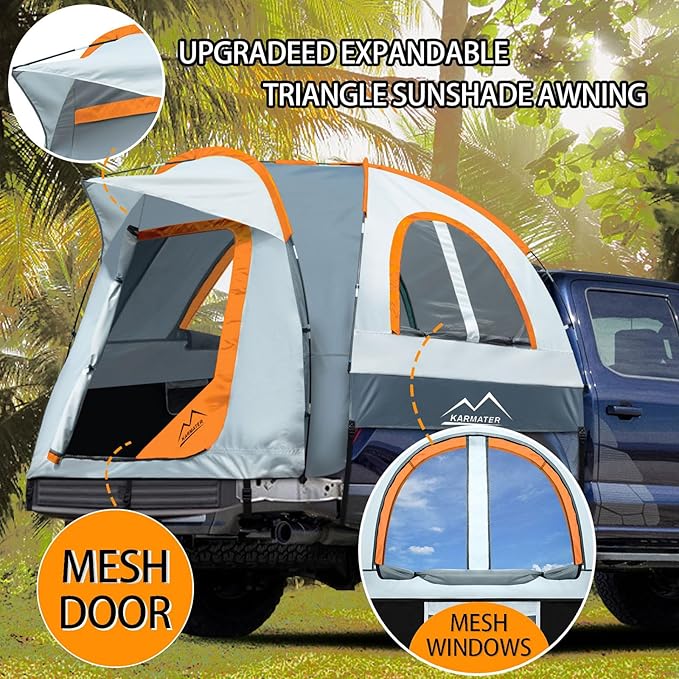 Pickup Truck Tent, Waterproof PU2000mm for Camping 5.5-6.5 Ft Bed, 2-Person Sleeping With Double Layer Design Windows, Expandable Triangle Sunshade AwningB0C8TBHPGL