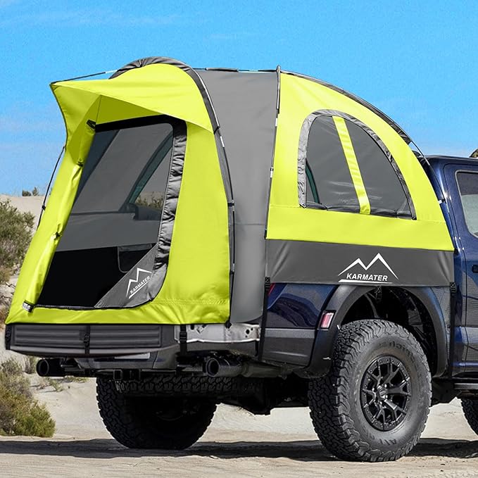 Pickup Truck Tent, Waterproof PU2000mm for Camping 5.5-6.5 Ft Bed, 2-Person Sleeping With Double Layer Design Windows, Expandable Triangle Sunshade Awning