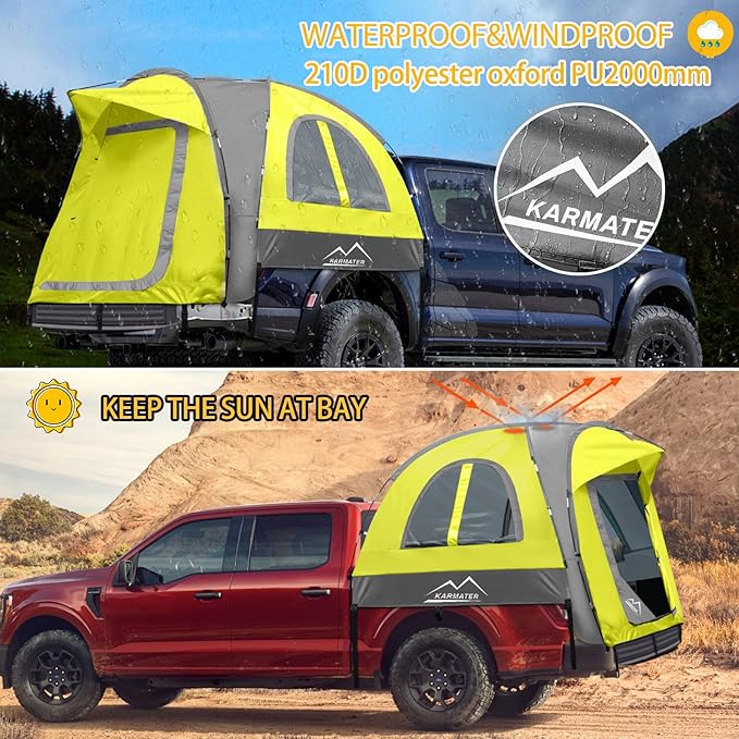 - 【Waterproof & Durable Material】Enjoy the great outdoors with this pickup truck tent that offers unbeatable water-resistance. Made of PU2000mm polyester oxford and coated with PU2000 waterproof coating, it delivers complete rainproof and waterproof performance without the need for a separate canopy. The bottom layer is waterproof to avoid any rainwater infiltration while the inner space remains clean and dry. A must-have for camping trips!