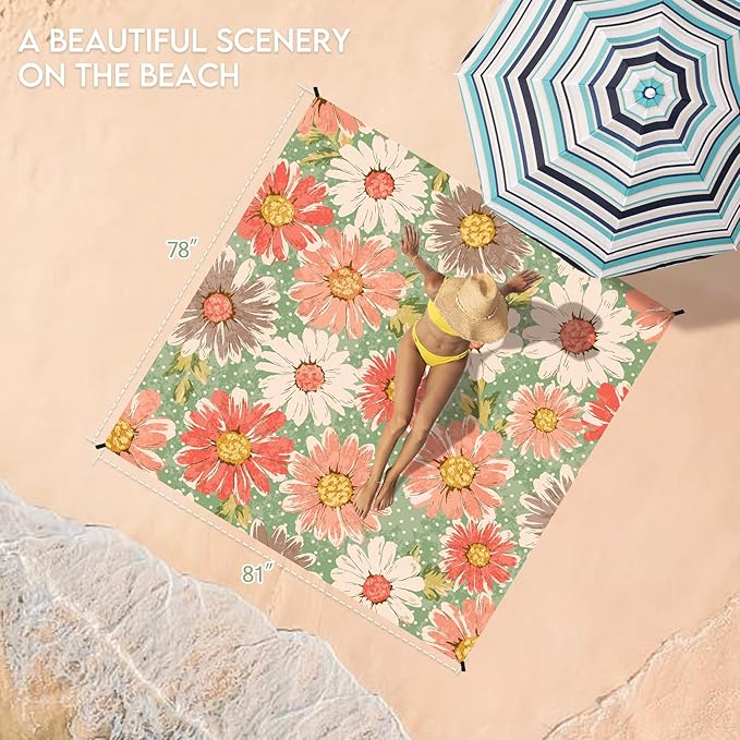 - 🏕️Beach Blanket Oversized:Good tear resistance,dry quickly.Can also be used as a rain shed,sunshade,tent,toddler crawl,emergency mat.Feel comfortable to lying down.Won't irritate your skin,better professional fabric sewing.