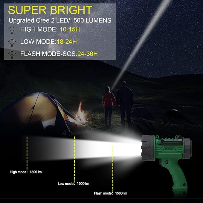 YIERBLUE Rechargeable Spotlight Flashlight, 200000 High Lumen LED Spotlight with 20Hrs Ultra-Long Running&10000mAh Power Bank,IP67Waterproof Spot Lights(Large)