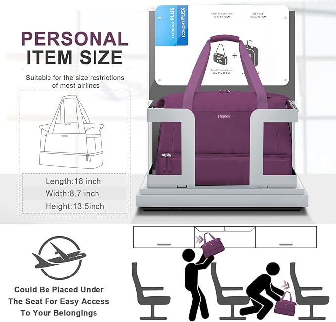 - Wide Application Gym Bag:A perfect choice for carrying all your gym and travel essentials. Use it as an airplane personal item bag, luggage bag, gym sports bag, weekend bag, carry-on bag, beach bag. This women's gym bag is suitable for both indoor and outdoor sports, such as travel, sports, weekend trips, yoga, gym, beach, business or other daily use