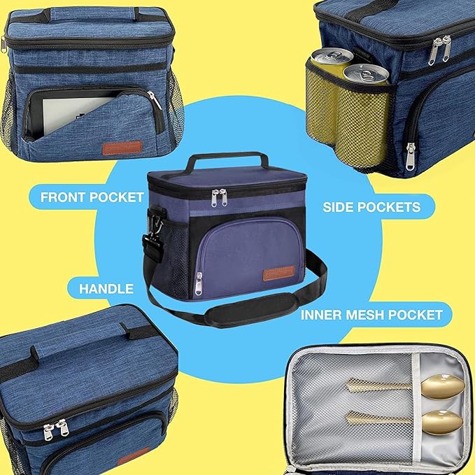 ExtraCharm Insulated Lunch Bag for Women/Men - Reusable Lunch Box for Office Picnic Hiking Beach - Leakproof Cooler Tote Bag Organizer with Adjustable Shoulder Strap for Adults