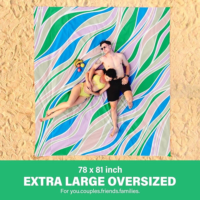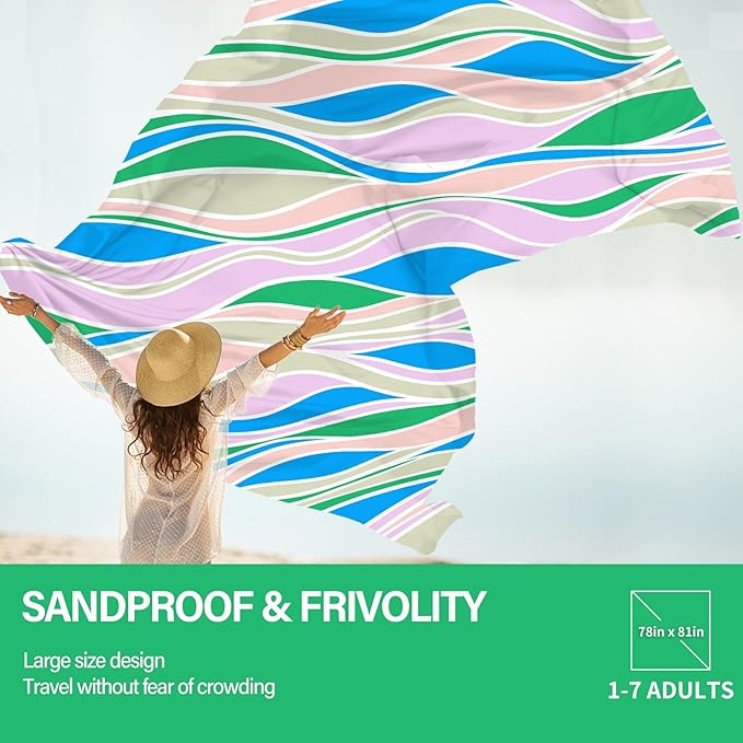 Beach Blanket Oversized Extra Large 78" X 81",Waterproof Sandproof Beach Blanket 1-7 Adults Lightweight Durable for Travel Camping Hiking Picnic