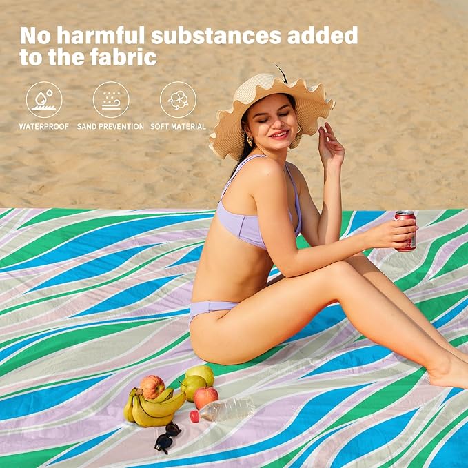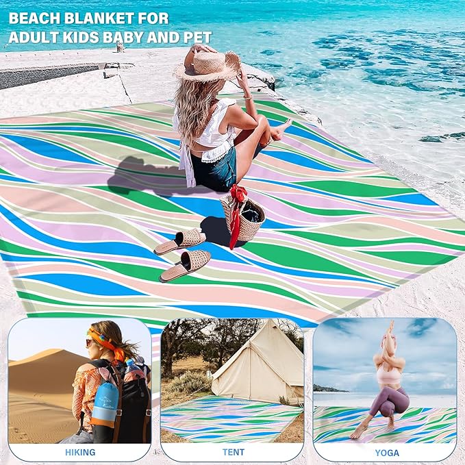 - Beach Blanket Waterproof Sandproof:Dry-Quick,Can also be used as a rain shed,sunshade,tent,toddler crawl,Emergency mat,Feel comfortable lying down.