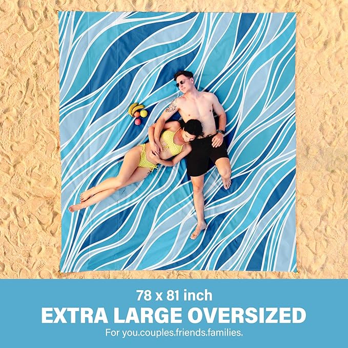 Beach Blanket Oversized Extra Large 78" X 81",Waterproof Sandproof Beach Blanket 1-7 Adults Lightweight Durable for Travel Camping Hiking Picnic