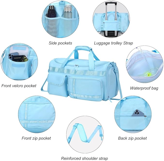 • Multi-Purpose Bags & Perfect Present:MAXTOP travel duffel bag can be used as a business travel bag, short journey bag, weekend overnight bag, toiletry bag, camping bag, sports duffle dag, gym tote bag, carry-on luggage, etc. Widely used, it is a perfect gift for your wife, friends and parents.