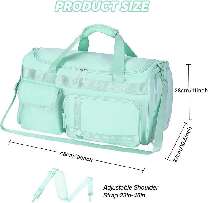 • Large Capacity & Adjustable Strap:Size:19x10.5x11 inches. The travel bag can be stored clothes, toiletries, fitness equipment and many other items. With a detachable adjustable shoulder strap, it can be easily adjusted according to personal preference to achieve a variety of carrying methods.