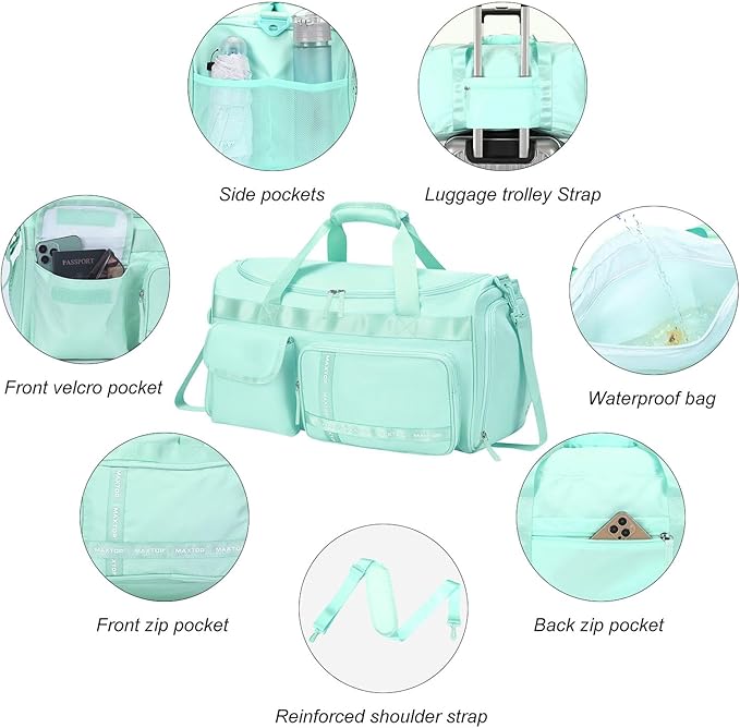 • Good Travel Companion:MAXTOP duffle bag for adults is large enough to store all your travel and gyms gear, perfectly suited to daily travel needs. The back luggage strap can be easily placed on the suitcase, freeing your hands and making travel easier.