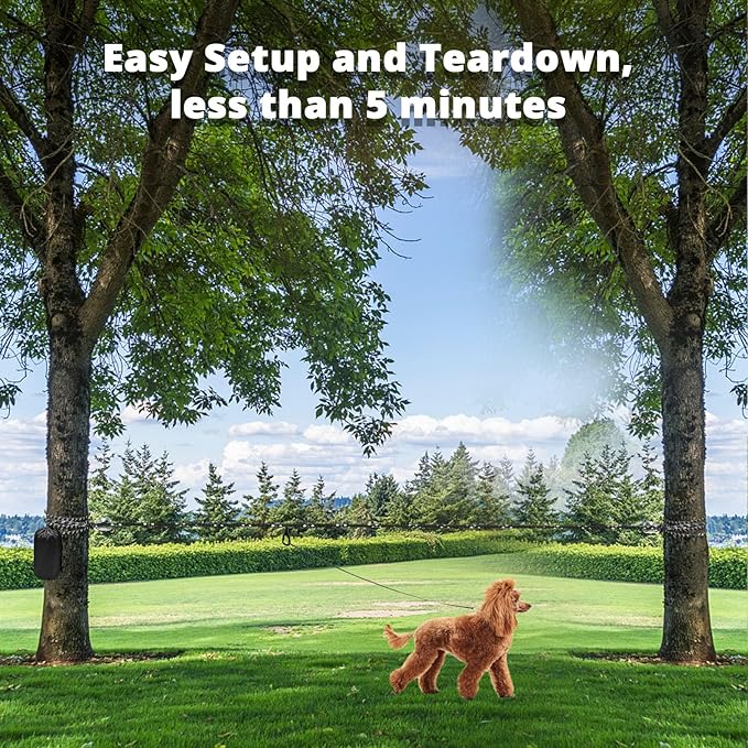 - 🐶EASY TO INSTALL & REMOVE:Dog trolley system is specially designed for dog outdoor events,which can be installed quickly by one person within 5 minutes.Set up anywhere you want, between two trees or other anchor points.Whether in parks, gardens, forests, mountains or your own yard,you can take your pets together on all kinds of adventures