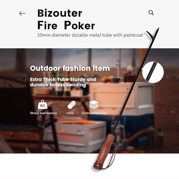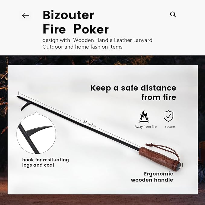 - WONDERFUL GIFT FOR FIRE LOVER - The surface of the firepit poker has an anti-rust coating and High-temperature resistance, it has not bend due to the heat. and with ergonomic wooden handle, a comfortable feel and balance to our fireplace poker.It also with a Hanging Leather Lanyard and waterproof nylon pouch.All in all, it's a fabulous gift for fire pits lovers and Solo Stove Accessories