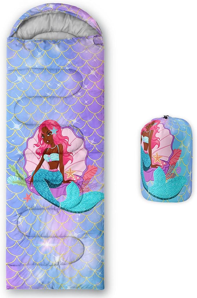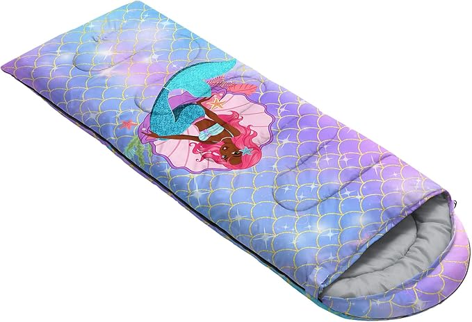 - SUITABLE:The sleeping bag can be used for 3 Seasons.SIZE:90.5"L x 31.5"W Suggenal extreme temperature: 41 ℉ -77 ℉.Applicable in a variety of scenarios,such as Travel camping pajamas party,It's very suitable for you to travel with your children.Half-circle hood with adjustable drawstring,which can keep you warm and prevent your humidity