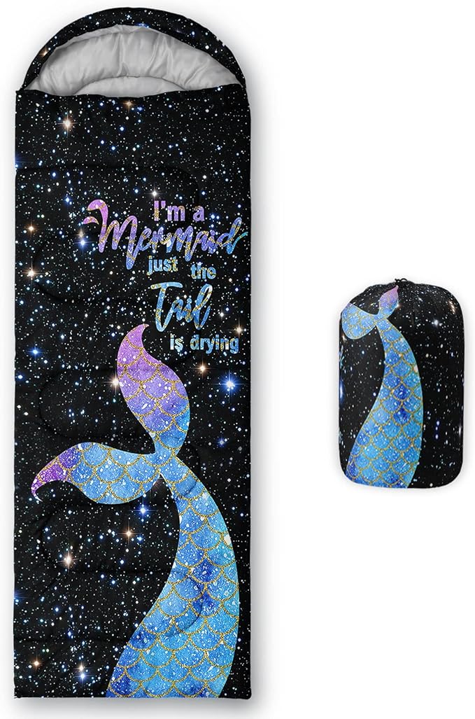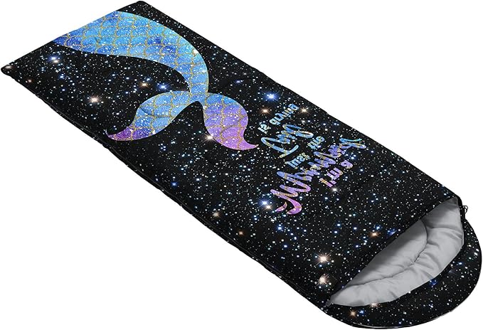 - SUITABLE:The sleeping bag can be used for 3 Seasons.SIZE:90.5"L x 31.5"W Suggenal extreme temperature: 41 ℉ -77 ℉.Applicable in a variety of scenarios,such as Travel camping pajamas party,It's very suitable for you to travel with your children.Half-circle hood with adjustable drawstring,which can keep you warm and prevent your humidity