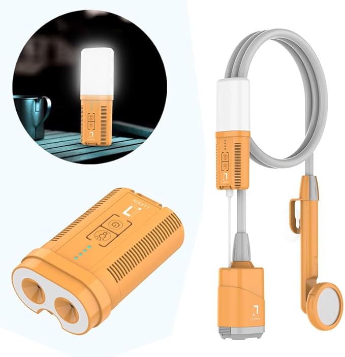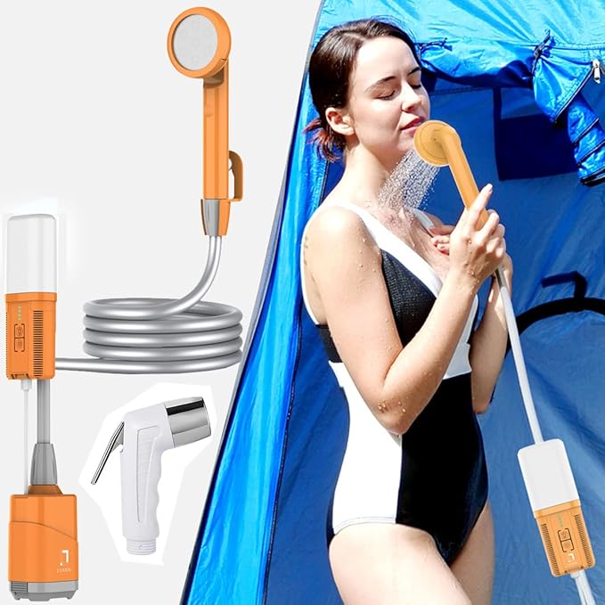 COSWE Portable Camping Shower, Outdoor Camp Pump with Rechargeable 4400mAH Battery and 130LM Led Lighting Device for Camping Hiking Outdoor Beach Garden