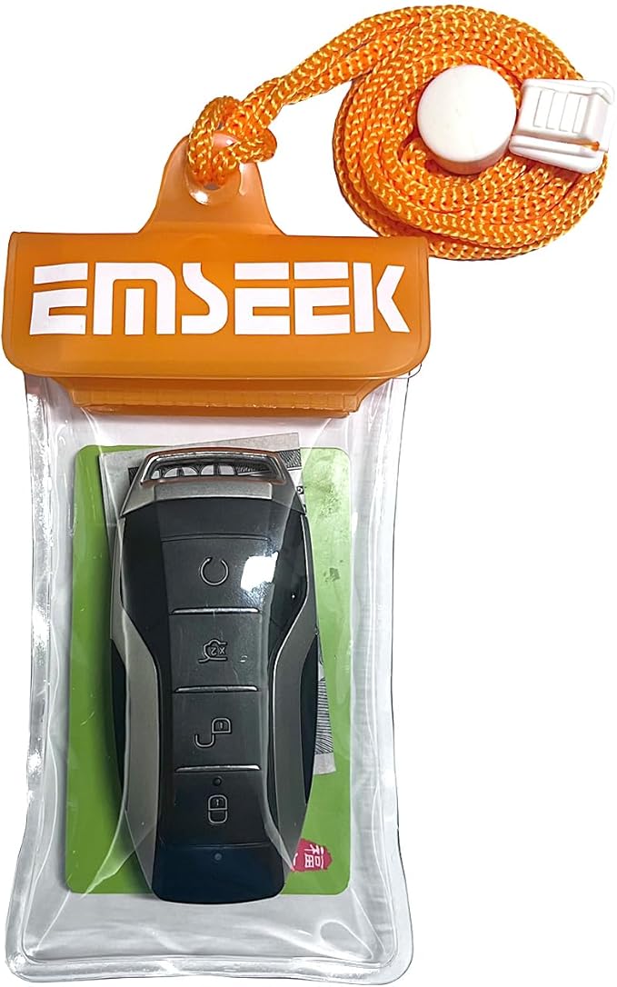 - 1. EMSEEK Waterproof car key fob case IPX8 Waterproof up to 10m Designed to protect your small items from water. Perfect for surfing, swimming, snorkeling, diving, sailing, kayaking, camping, hiking, fishing, beach and more watersports.