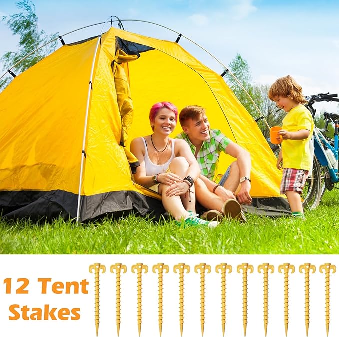 12 Pack Tent Stakes, Stakes for Inflatables, 7.5 inch Heavy Duty Spiral Design Outdoor Tent Stakes, Ground Stakes Ground Anchors Pegs, Yard Lawn Pegs Anchor for Canopy, Camping, Hiking, Beach