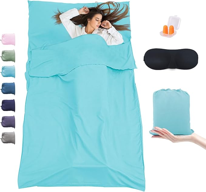 - LIGHTWEIGHT AND PACKABLE: This sleeping bag liner measures 45.2 x 82.6 inches and weighs just 19.7 ounces. It easily folds into a compact 9 x 9.8 inches pocket, making it highly portable and perfect for saving space in your backpack during travel