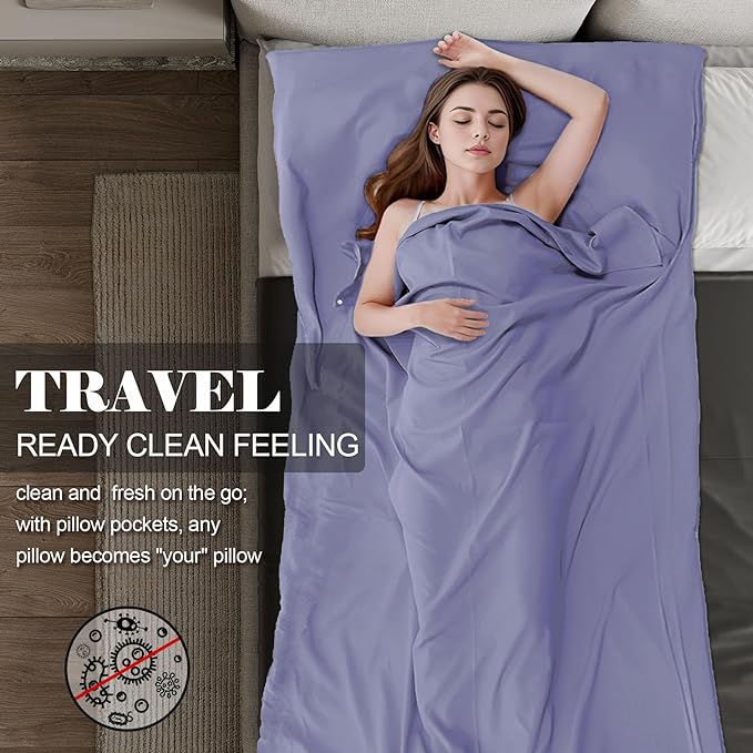 - INTEGRATED PILLOW SLEEVE:This zippered sleeping bag liner includes a handy pillow pocket where you can stuff your jacket for a cozy pillow while camping.When traveling, use the pocket to keep the hotel pillow separate for a cleaner, more hygienic sleep