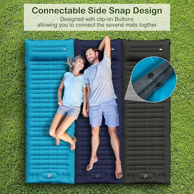 - 【Get One More for A Twin Bed】With clip-on buttons on each side, you can easily attach one to another sleeping mat and make it a double bed, to provide more space for leisure and entertainment. It's also ideal as a guest bed in your home if desired, providing you and your guests with the same feeling as in your beds. It comes in different colors on each side, make your sleeping pad more distinctive than others.