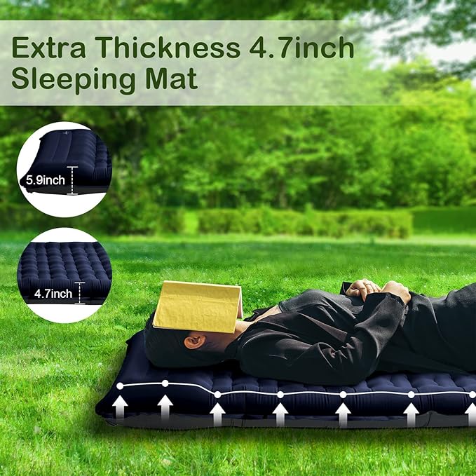 Sleeping Pad for Camping, Thick 4.7 Inch Ultralight Inflatable Sleeping Mat with Built-in Pump,Portable Air Mattress with Pillow for Camping, Backpacking, Hiking,Tent,Dark Blue